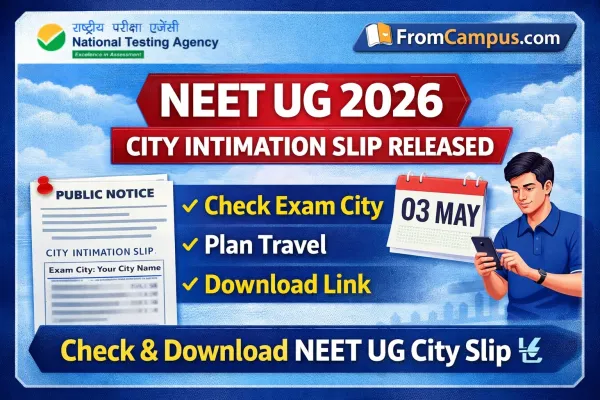 The release of the NEET UG 2026 City Intimation Slip is part of the pre-examination process. It helps candidates know their exam city in advance so they can plan travel and accommodation properly.